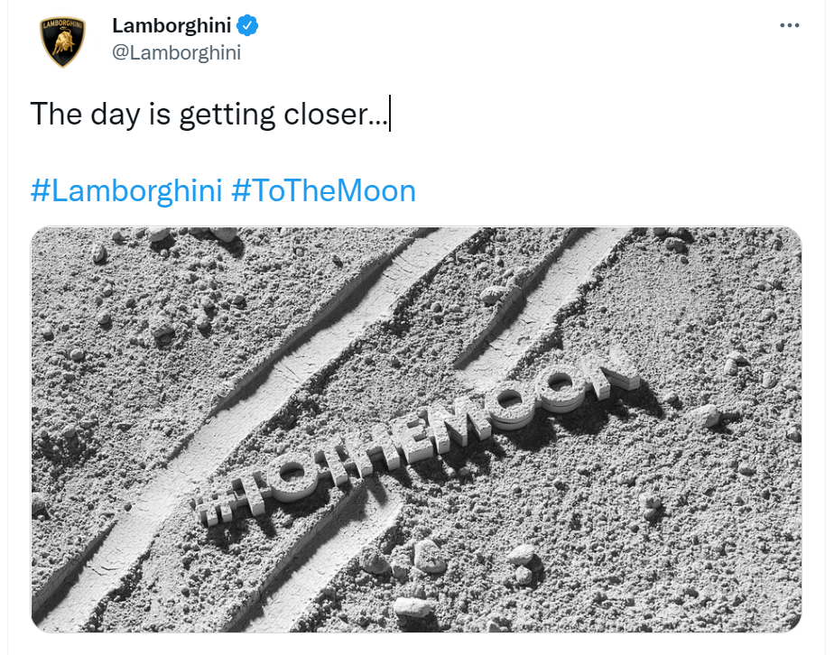 12月22日消息,豪车品牌兰博基尼在其官方推特上发布“To the moon”的图文,并表示日期越来越近……或暗示将推出NFT。今年一月,兰博基尼宣布支持用户在购车时使用加密货币进行支付,去年还为部分车型推出限量版数字邮票。该公司目前正在与Bitstamps合作,并利用区块链技术来保证每个数字邮票的历史和独特性。